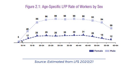 In the educational sector, only a fraction of girls—less than 10%—completed secondary school, which hampers their future economic participation, according to the Pakistan Demographic Survey 2020. This limited educational access contributes to women's workforce involvement being remarkably low, with just 21% of Pakistani women employed. The situation is further exacerbated in the transition to the labour market, where a substantial gap persists: while 83% of educated adult men are part of the labour force, only 30% of their female counterparts can say the same. The digital gender gap further hampers progress, with women lagging in mobile phone ownership (37% compared to 89% for men) and internet access (20% for women versus 51% for men).
