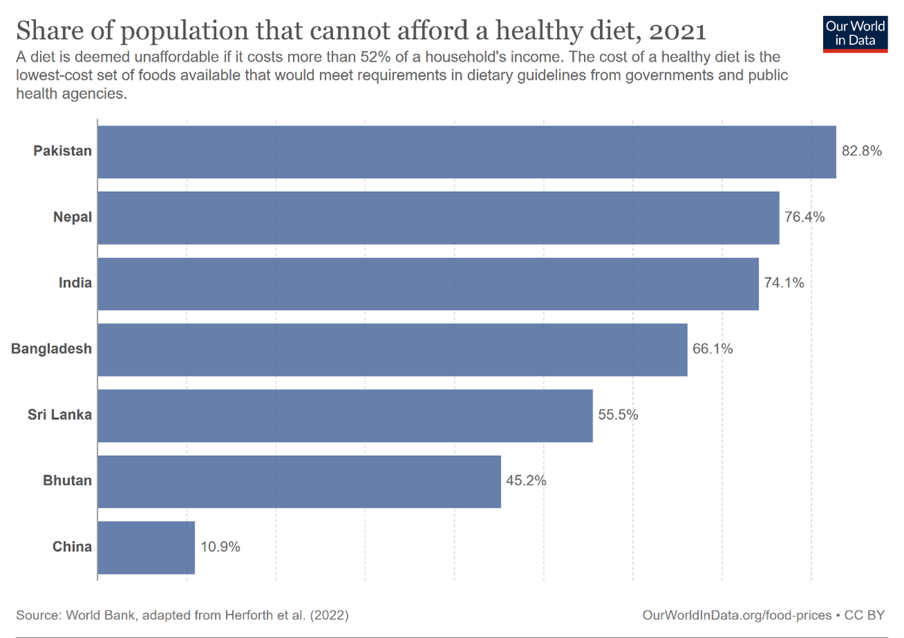 In 2021, in Pakistan more than 80% people couldn’t afford a healthy diet. This was the peak of Covid-19 pandemic.
