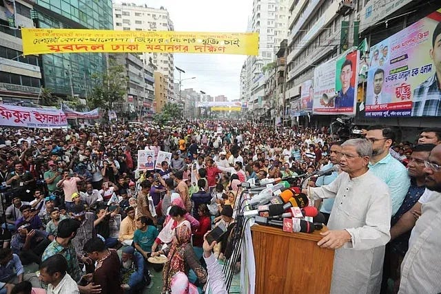 Prothom Alo reports that BNP Secretary General Mirza Fakhrul Islam Alamgir has demanded the unconditional release of Khaleda Zia, the party's ailing chairperson and former prime minister, during a large rally in Dhaka's Naya Paltan area. He warned of severe consequences if the government fails to comply. Fakhrul urged citizens to join the movement to oust the Awami League from power, restore democracy, and protect the country from what he termed as the "looter regime."