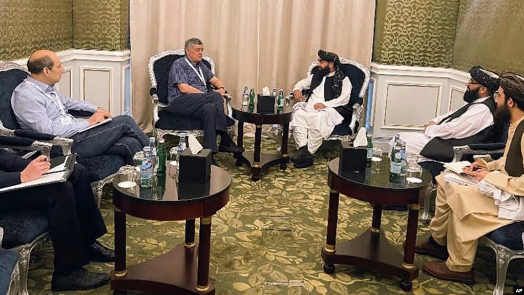 Rahim Faeiz writes in AP that the Taliban’s delegation to the third United Nations-led Doha meeting on increasing engagement with Afghanistan met with U.S. envoys on the sidelines and discussed the two Americans imprisoned in the central Asian country. Special Representative Thomas West and Special Envoy Rina Amiri met directly with the Taliban, according to State Department spokesman Vedant Patel. West pressed for the immediate and unconditional release of U.S. citizens unjustly detained in Afghanistan. The matter was simply raised with no concrete conclusion.