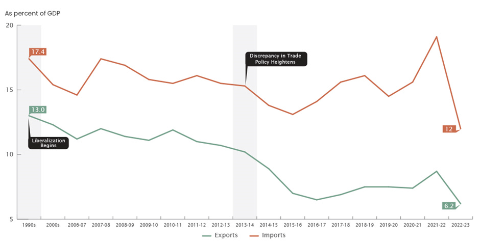 A recent World Bank study found that Pakistan’s tariff policy has resulted in exceptionally high effective protection for domestic industries, which has effectively discouraged significant exporting. In short, a protectionist approach has inadvertently led to a decline in exports.