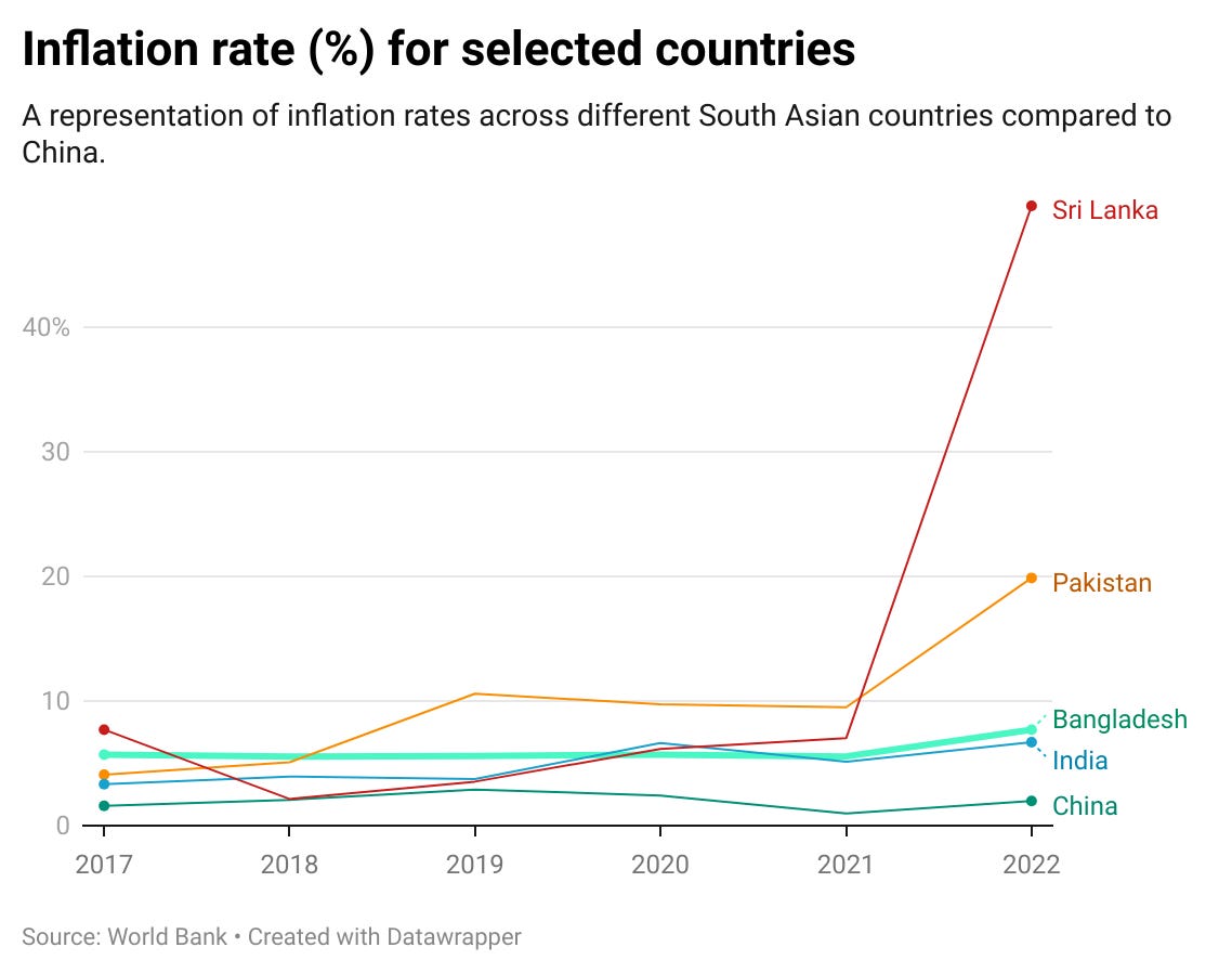 The article examines how Sri Lanka has successfully reduced its inflation rate through policy rate increases, fiscal austerity, and IMF negotiations, but Bangladesh, on the other hand, is still dealing with inflation, particularly rising food prices. Read more: The Business Standard