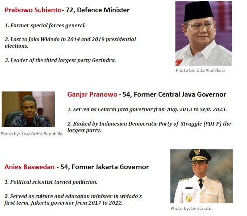 Indonesia is preparing for its upcoming presidential election in February, the world's largest direct presidential vote. Approximately 204.8 million people are eligible to vote, and candidates from 24 parties will be vying for positions as national and regional lawmakers. Three prominent candidates are expected to join the race: Ganjar Pranowo, a two-time election veteran, Prabowo Subianto, and Anies Baswedan. Opinion polls suggest that Pranowo and Subianto are in a close competition, with the right choice of running mate potentially making the difference. A runoff election is expected as none of the tickets is likely to secure more than half of the votes, with the second round scheduled for June 26, 2024.