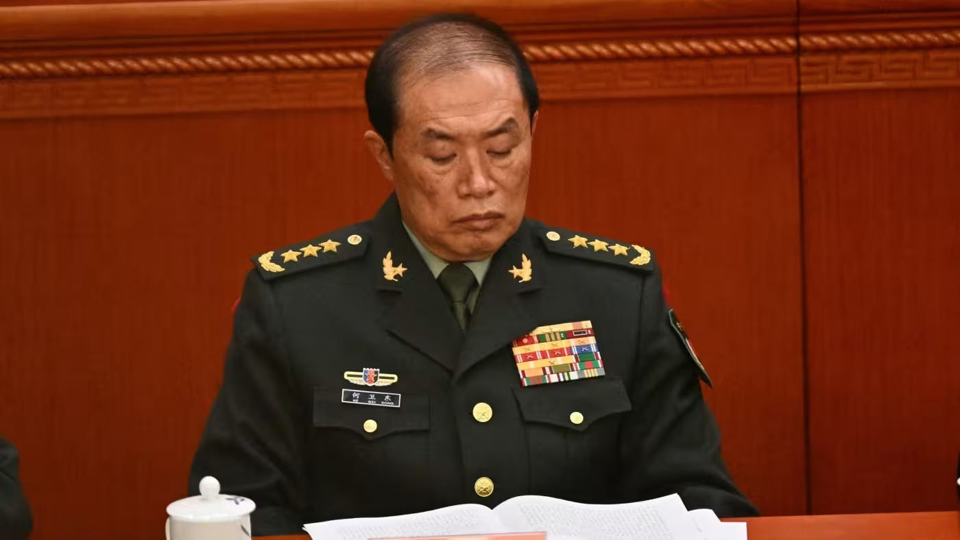 Demetri Sevastopulo writes in the Financial Times that General He Weidong, China’s second-highest-ranking military officer and a politburo member, has been removed in Xi Jinping’s most significant military purge in decades. He’s dismissal, reportedly linked to corruption, underscores Xi’s tightening grip on the PLA, following previous removals of top commanders and defence ministers to assert political and institutional control.