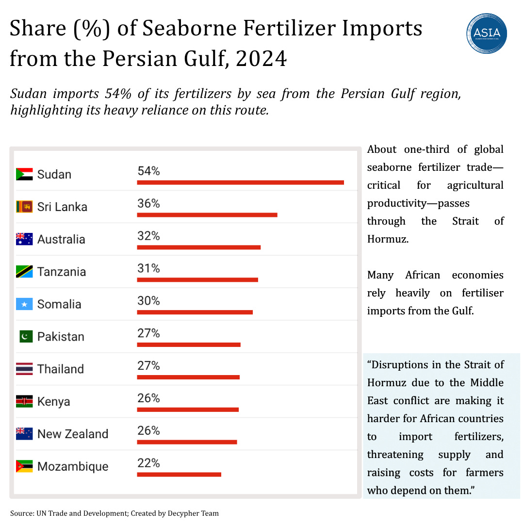 Many African economies rely heavily on fertilizer imports from the Gulf, where abundant fossil gas supports large-scale production of nitrogen-based inputs like urea. Countries such as Sudan, Somalia, and Kenya are particularly exposed, with a significant share of their fertilizer arriving via these disrupted maritime routes. As prices surge, the knock-on effects are being felt in food systems, household budgets, and inflation.