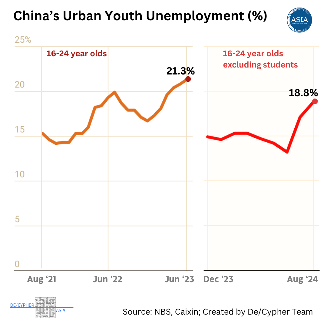 Amid the shifting economic landscape – in which the emerging industries of new energy vehicles, semiconductors and carbon neutrality have yet to pick up the slack – the unemployment rate for 16- to 24-year-olds in urban areas jumped to 18.8% in August, the highest this year. (Caixin)