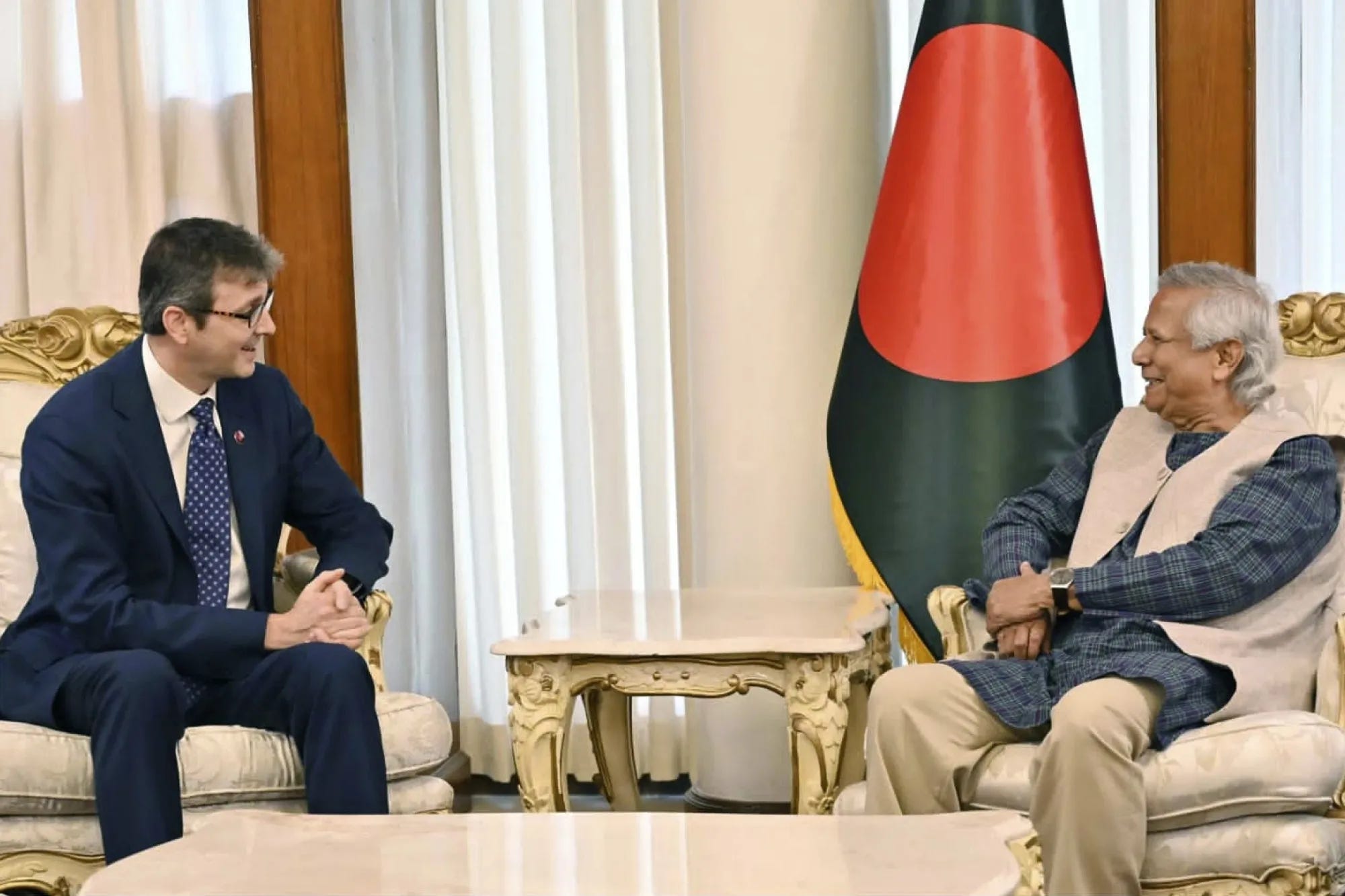 A high-level US team met with Nobel laureate Muhammad Yunus, the leader of Bangladesh's interim administration, on Sunday to reiterate "dedication to fostering inclusive economic growth," according to the US Embassy in Dhaka. (AP)