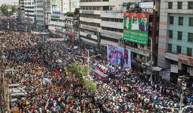 Thousands of activists and politicians from the opposition Bangladesh Nationalist Party marched in the country's capital on Tuesday to demand a democratic transition through an election, as an interim administration has yet to set a timetable for new voting. (Arab News)