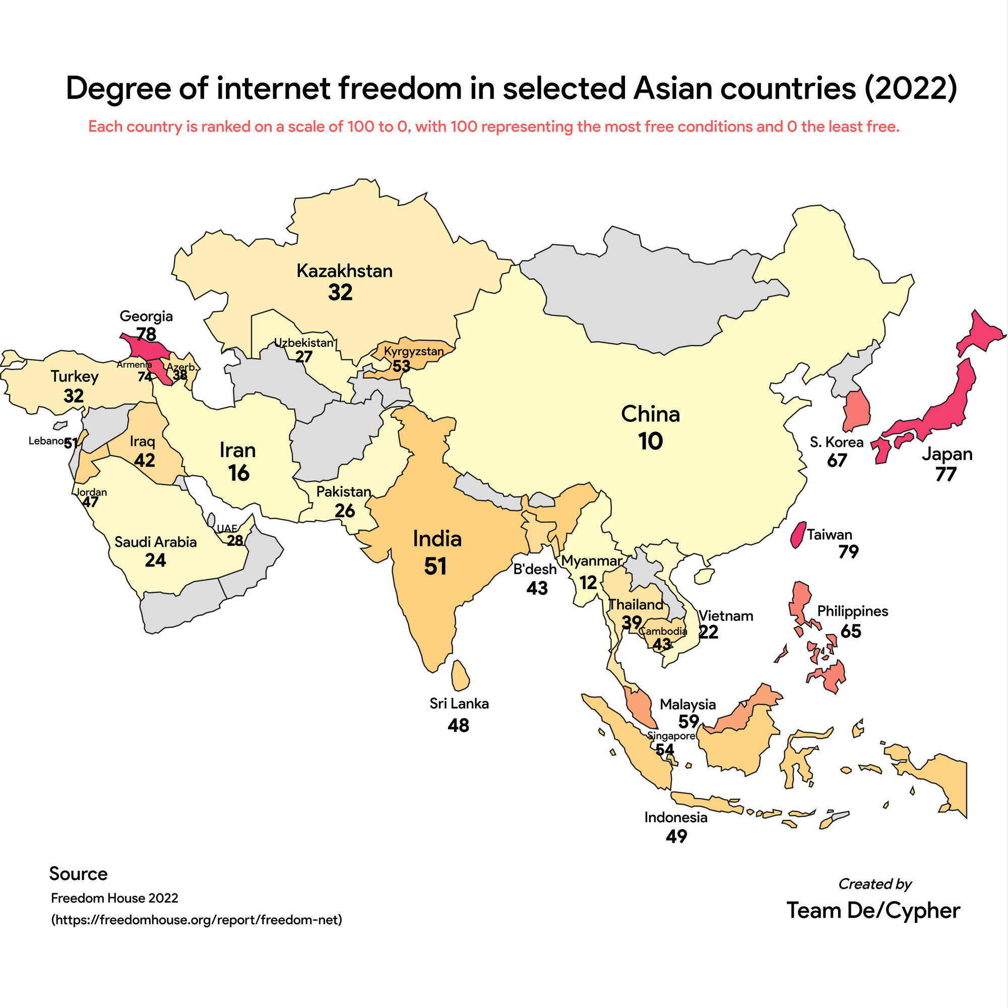Innovators and Emulators: China and Russia’s Compounding Influence on Digital Censorship (summary of Asian countries)