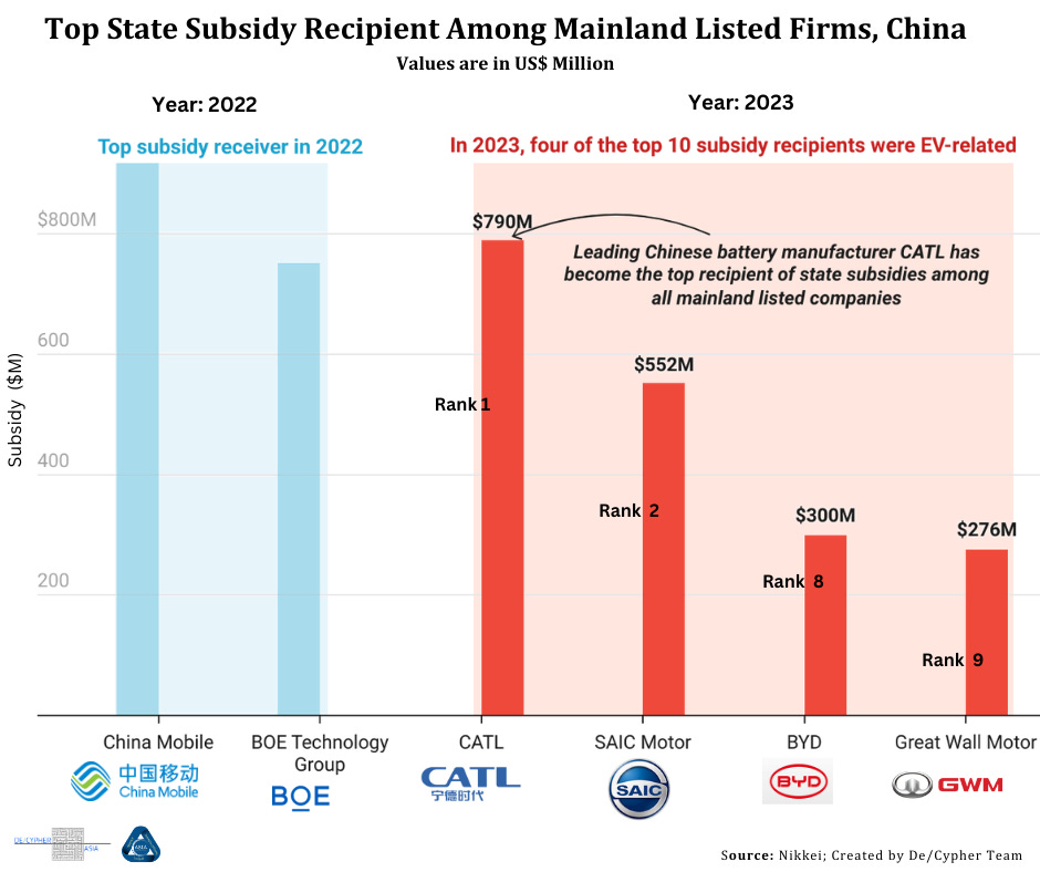 Leading Chinese battery manufacturer CATL has become the top recipient of state subsidies among all mainland listed companies. The company did not disclose what it used the money for in its latest annual report. State oil companies had long dominated the list, but the most recent version places more of a focus on electric vehicles (EVs) and other high-priority tech areas like semiconductors and solar panels.