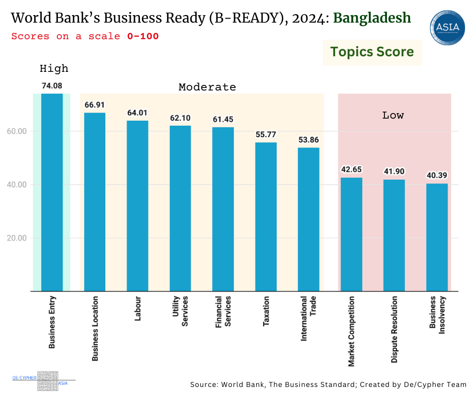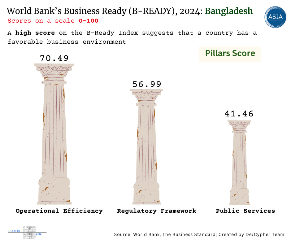 The Business Ready (B-READY) Index by the World Bank assesses the business environment and investment climate across various economies. There are 3 pillars and each of these pillars is evaluated across 10 topics that follow the lifecycle of a business, such as Business Entry, Business Location, Utility Services, Labor, Financial Services, International Trade, Taxation, and Dispute Resolution.