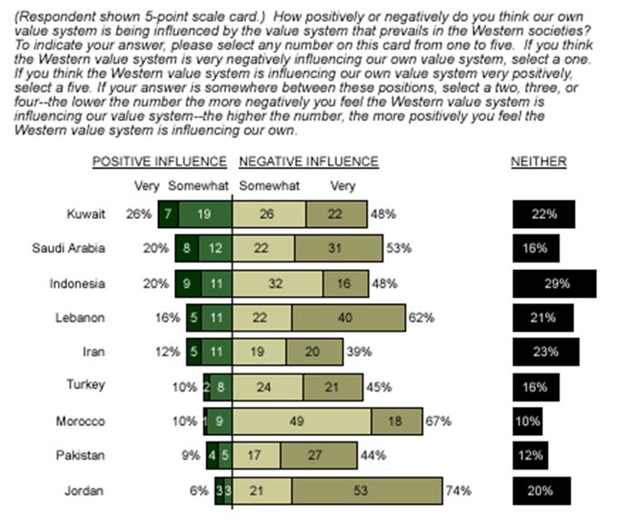 The decrease in trust observed among Islamic countries, dropping from 32% in 1998 to just 15% in 2022, is part of a larger global trend towards individualism and a departure from collective traditional values. However, it's important to note that this trend does not manifest uniformly across all Islamic nations due to various social, economic, and political influences. The Gallup's Poll of the Islamic World reveals that, in Pakistan, there is a prevailing sentiment that Western nations show little interest in improving coexistence with the Islamic world, aligning with a broader skepticism observed in surveyed countries. Noteworthy is Turkey, where respondents credit the West with an interest in improving relations, presenting a unique exception to the prevailing sentiment.