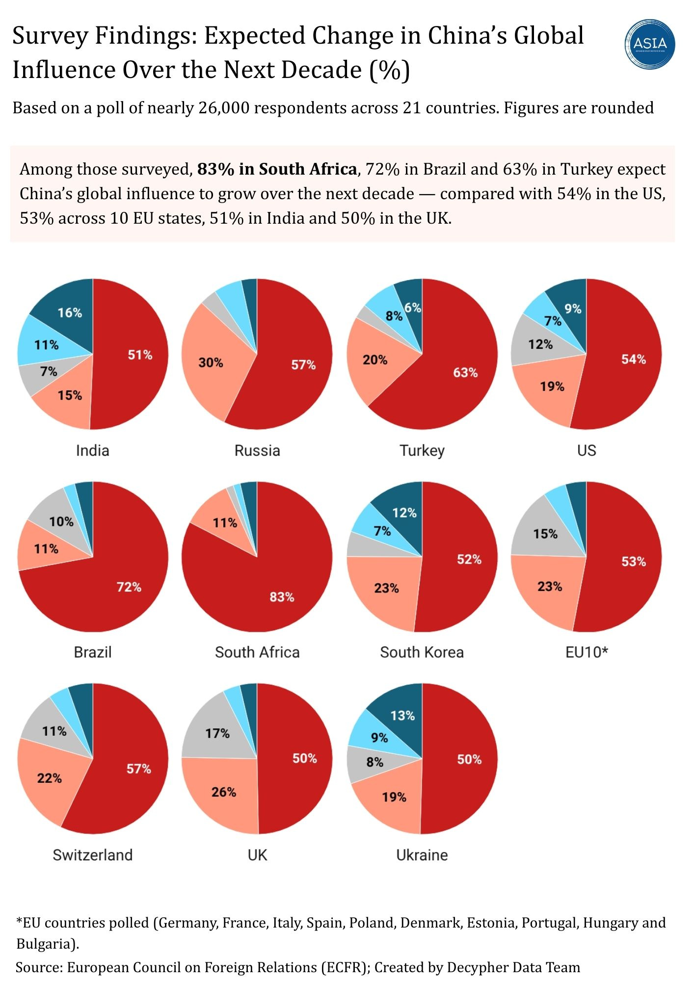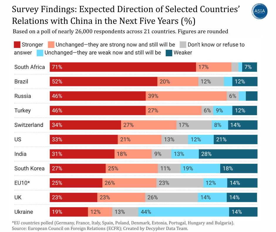 According to an analysis by the European Council on Foreign Relations (ECFR), many people around the world expect China’s already considerable global influence to grow over the next decade, and more now view Beijing as an ally or a necessary partner.