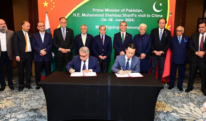 Pakistan and China have signed 23 Memoranda of Understanding (MoUs) aimed at enhancing collaboration across various sectors. The MoUs signed Friday in Islamabad included transportation infrastructure, industry, energy, agriculture, media, healthcare, water management, socio economic development, and other mutual areas of interest. Following delegation-level discussions between Prime Minister Shehbaz Sharif and Chinese Premier Li Qiang in Beijing, Foreign Office spokesperson Mumtaz Zahra Baloch briefed the media, emphasizing the robust Pakistan-China Strategic Cooperative Partnership founded on mutual trust, shared principles, and strategic governance. Read more: Express Tribune