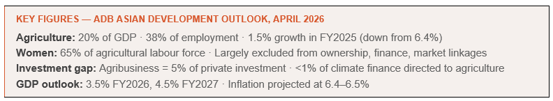 Pakistan’s agricultural crisis is usually narrated through weather, water, and weak logistics. Floods destroy crops, input costs rise, cold chains remain thin, exports stay concentrated, and the rural economy struggles to move up the value chain. All of that is true. But it does not get to the centre of the problem. One of the deepest constraints on Pakistan’s agricultural future is that the sector depends heavily on women’s labour while systematically denying women economic agency. Women work, but too often do not own. They produce, but too often do not price, borrow, transport, formalise, or scale. That is not merely a social wrong. It is a structural economic drag. Pakistan cannot seriously talk about agricultural modernisation while keeping much of the sector’s productive base behind social and institutional walls. ADB’s Asian Development Outlook April 2026 chapter on Pakistan lays out the sector’s fragility, while the World Bank’s report on women’s economic empowerment in Pakistan shows how deeply women remain excluded from the institutional side of the economy.