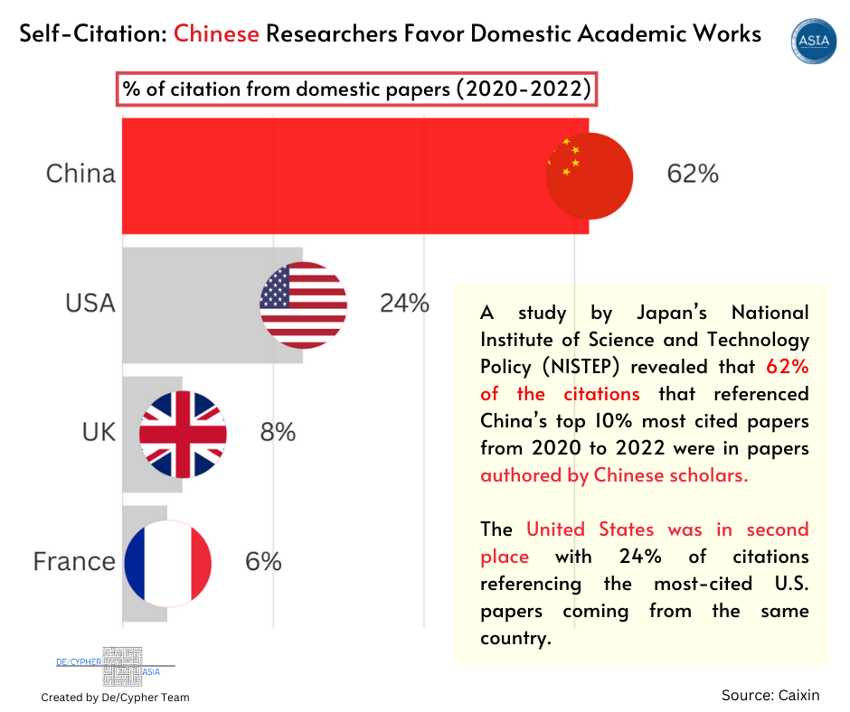 The research conducted by Ludwig Maximilian University of Munich found that 57% of citations for Chinese papers published in the top 10% of academic publications between 2000 and 2021 came from within the country. The U.S. ranked second at 37%.