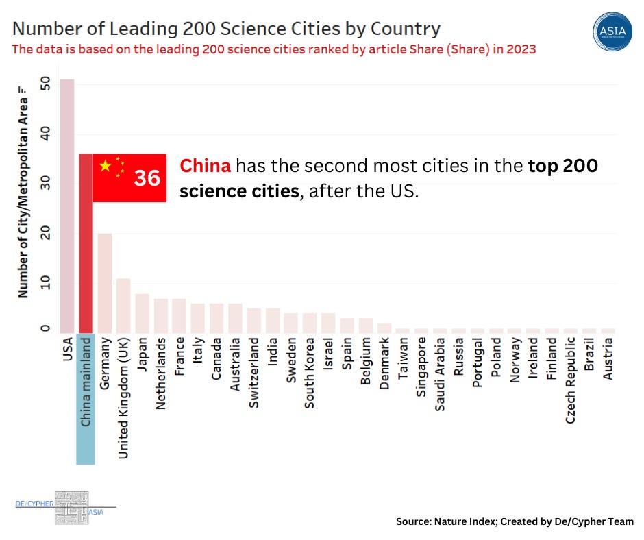 According to the Nature Index 2024 Science Cities supplement, China now has half of the top 20 science cities.