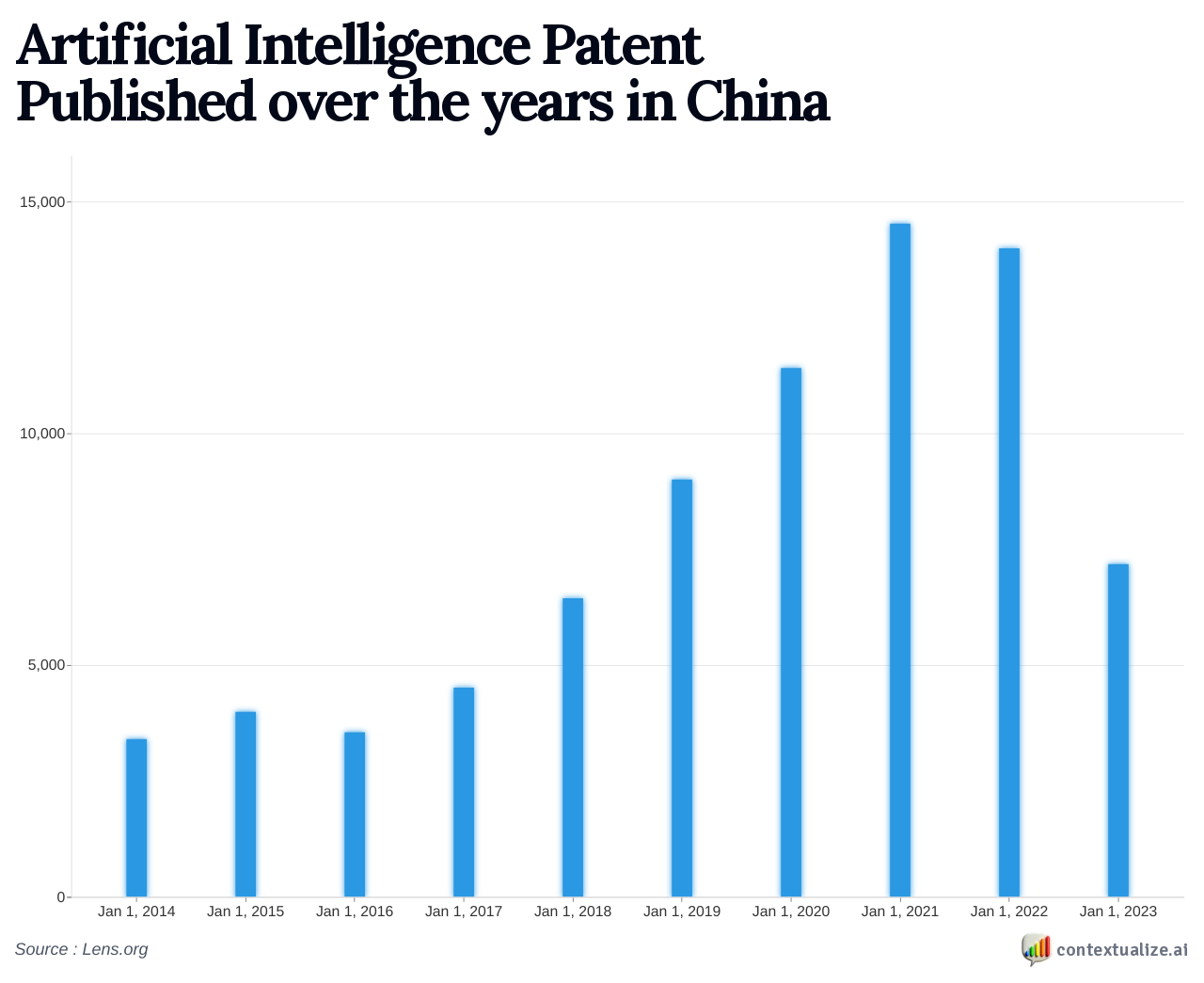 According to data from IP data provider Lens.org, the number of published patents related to AI in China has decreased since 2021. However, this may not tell the whole story. A 2021 article from the World Intellectual Property Organization (WIPO) reveals that China has filed the most patents in the field of AI in the past decade, accounting for 74.7% of the global total and ranking first in the world. This suggests that China has been reducing the availability of its AI-related data to the public over the past two years. Of the total patent applications filed in China, limited patent applications make up 41%, granted patents make up 3%, and patent applications make up 56%.